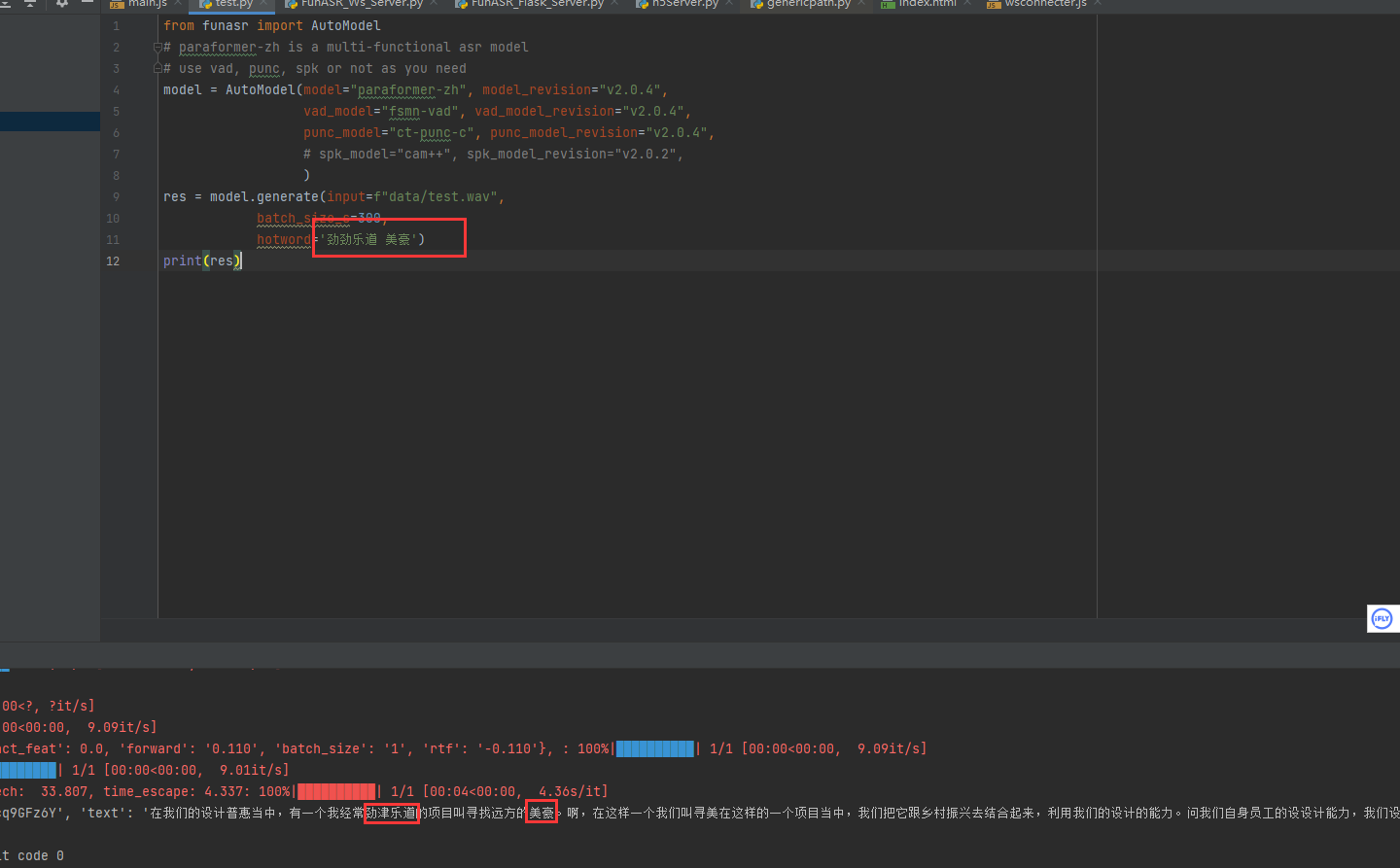 在modelscope-funasr用的paraformer的一个语音识别模型,怎么加上热词?