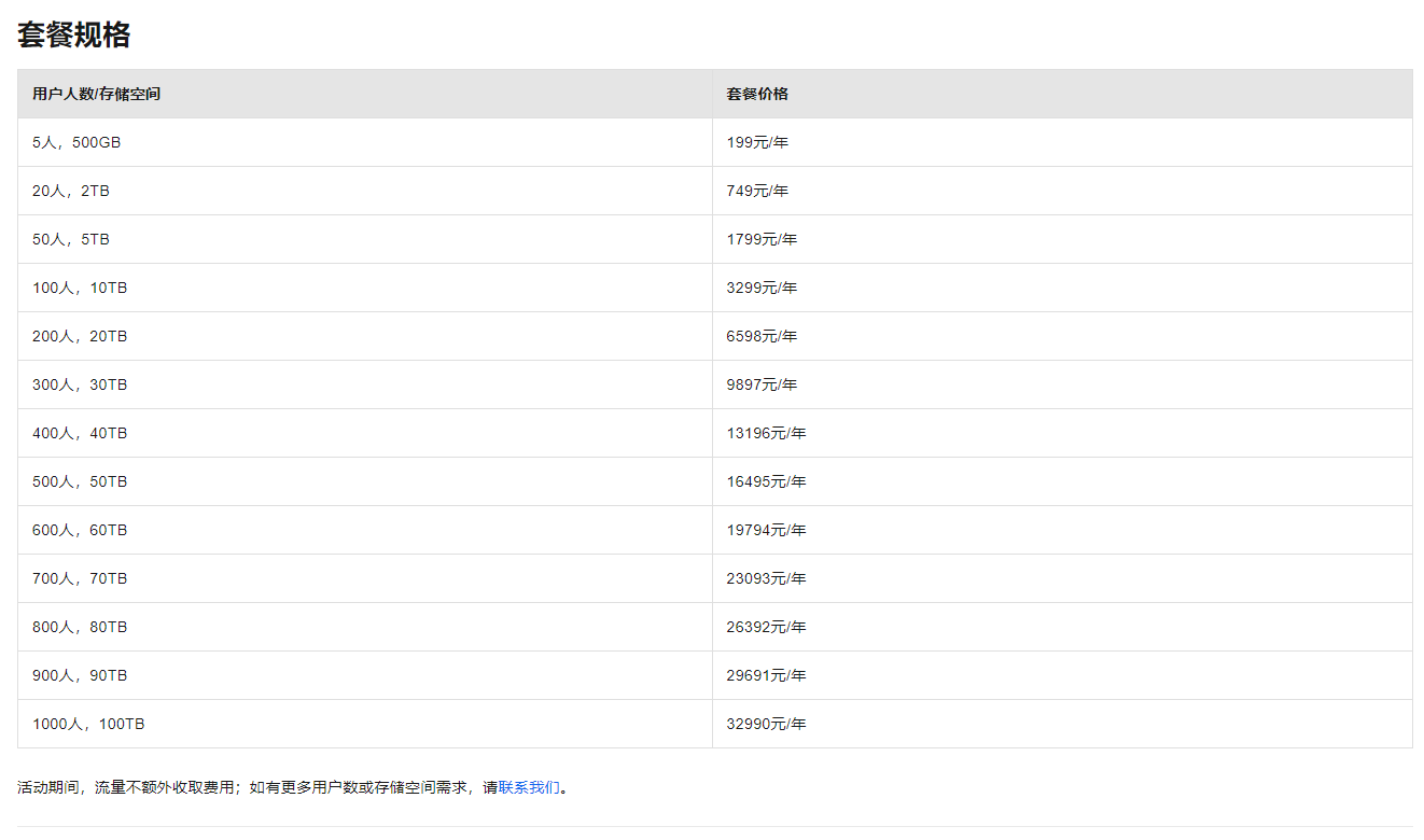 套餐请参考:https://help.aliyun.com/zh/pds/drive-and-photo-service-ent/product-overview/details-of-subscription-plans?spm=a2c4g.11186623.0.0.15a763d7WE328a
