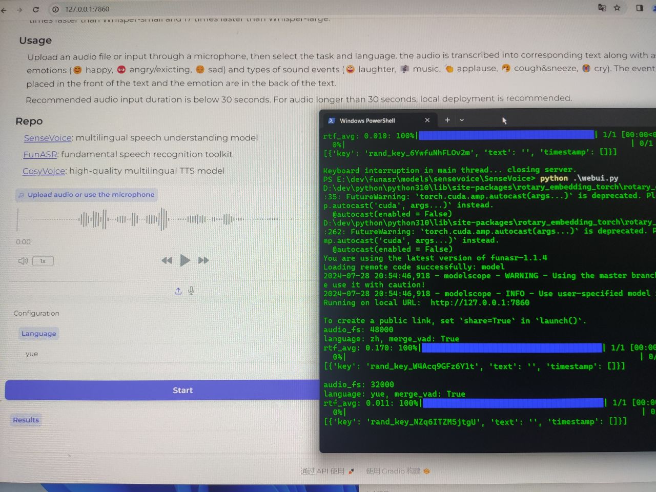 modelscope-funasr这个问题怎么解决?先按funasr文档搭建环境,跑sense自带例子和音频,识别文本为空。后又单独装sense,运行webui,传入sense自带的音频mp3,识别结果仍为空。