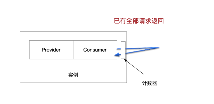 如果当前实例向下游发出的请求未得到响应,Dubbo-go会在客户端filter中维护一个线程安全的计数器来跟踪这些请求。优雅下线逻辑会轮询这个计数器,并依赖超时配置来强行结束等待,以确保不会无限期地阻塞下线流程。