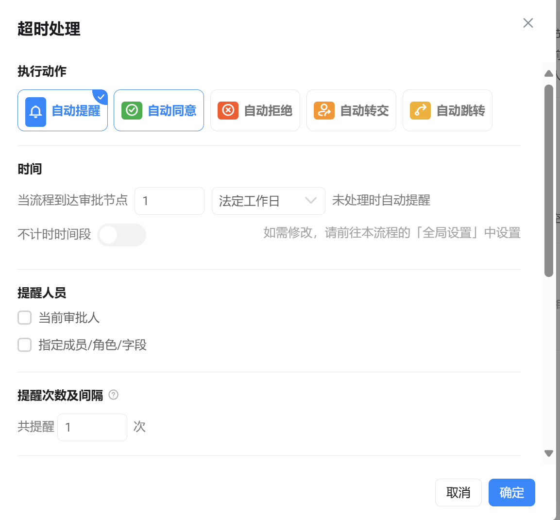 如图,超时审批只能够选择固定的时长,我希望由表单编辑人在表单内根据实际需求,填写一个时间(比如数值组件),然后根据这个时间来决定是否超时审批。