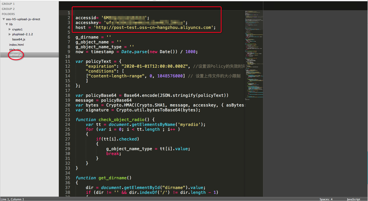 - 将文件解压,并打开upload.js文件。