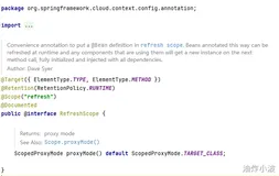 本文深入解析Spring Cloud中@RefreshScope注解实现配置热更新的原理。通过分析其组合注解特性,重点剖析@Scope("refresh")如何借助代理与缓存机制,在配置变更时触发Bean重建,结合Nacos实现动态刷新。全文涵盖注解结构、作用域管理及底层流程,帮助理解热更新核心机制。(238字)