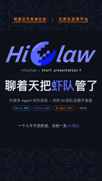 阿里云云原生团队正式开源 HiClaw,该项目作为 OpenClaw 的团队协作升级版,创新性引入 Manager Agent 架构,实现多 Agent 之间的高效协作与管理。HiClaw 通过 AI Gateway 对 API 凭证进行集中化管理,有效解决了原生 OpenClaw 存在的安全风险问题;其 Worker Agent 运行于独立容器内,确保技能与记忆实现完全隔离。