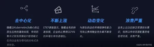 最近云原生领域热火朝天,那么云原生是什么?何为云原生?云原生用来干什么的?今天学长带领大家走进云原生时代~~ 何为云? 技术的变革,一定是思想先行,云原生是一种构建和运行应用程序的方法,是一套技术体系和方法论。云原生(CloudNative)是一个组合词,Cloud+Native。Cloud表示应用程序位于云中,而不是传统的数据中心;Native表示应用程序从设计之初即考虑到云的环境,原生为云而设计,在云上以最佳姿势运行,充分利用和发挥云平台的弹性+分布式优势。叶秋学长理解的云原生就是用来降本增效的,如下图: 云原生的应用程序是什么? 叶秋学长认为符合云原生架构的应用程序应该是:采用