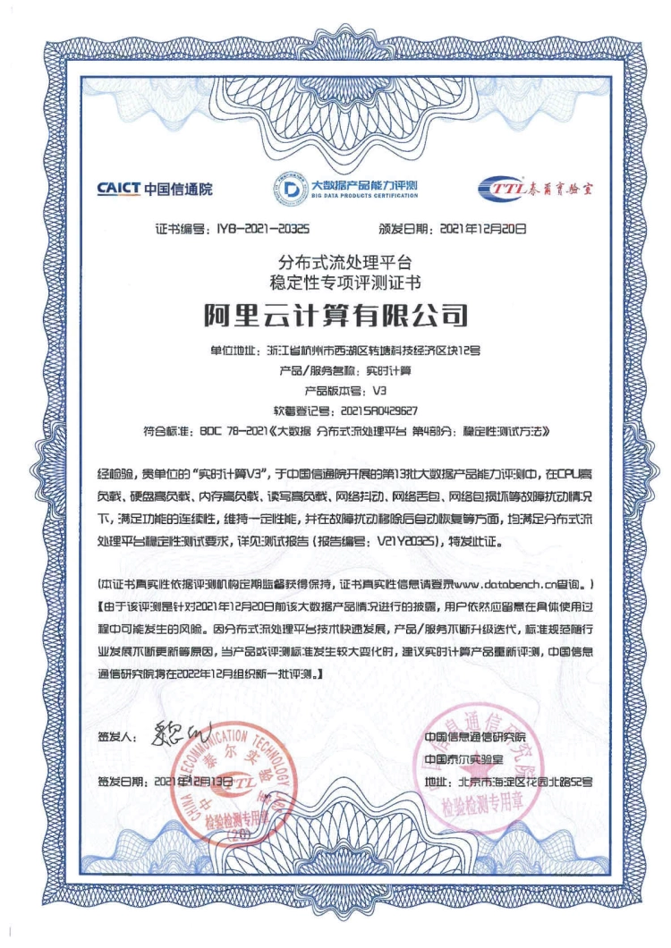 阿里云实时计算 Flink 版通过分布式流处理平台稳定性专项测评,阿里云成为「首批+唯一」通过该稳定性专项评测的厂商。