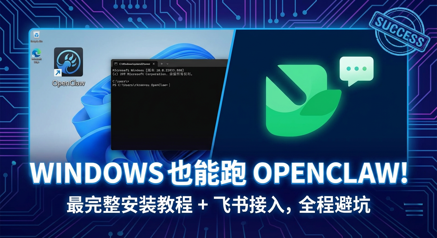Windows 也能跑 OpenClaw!最完整安装教程 + 飞书接入,全程避坑