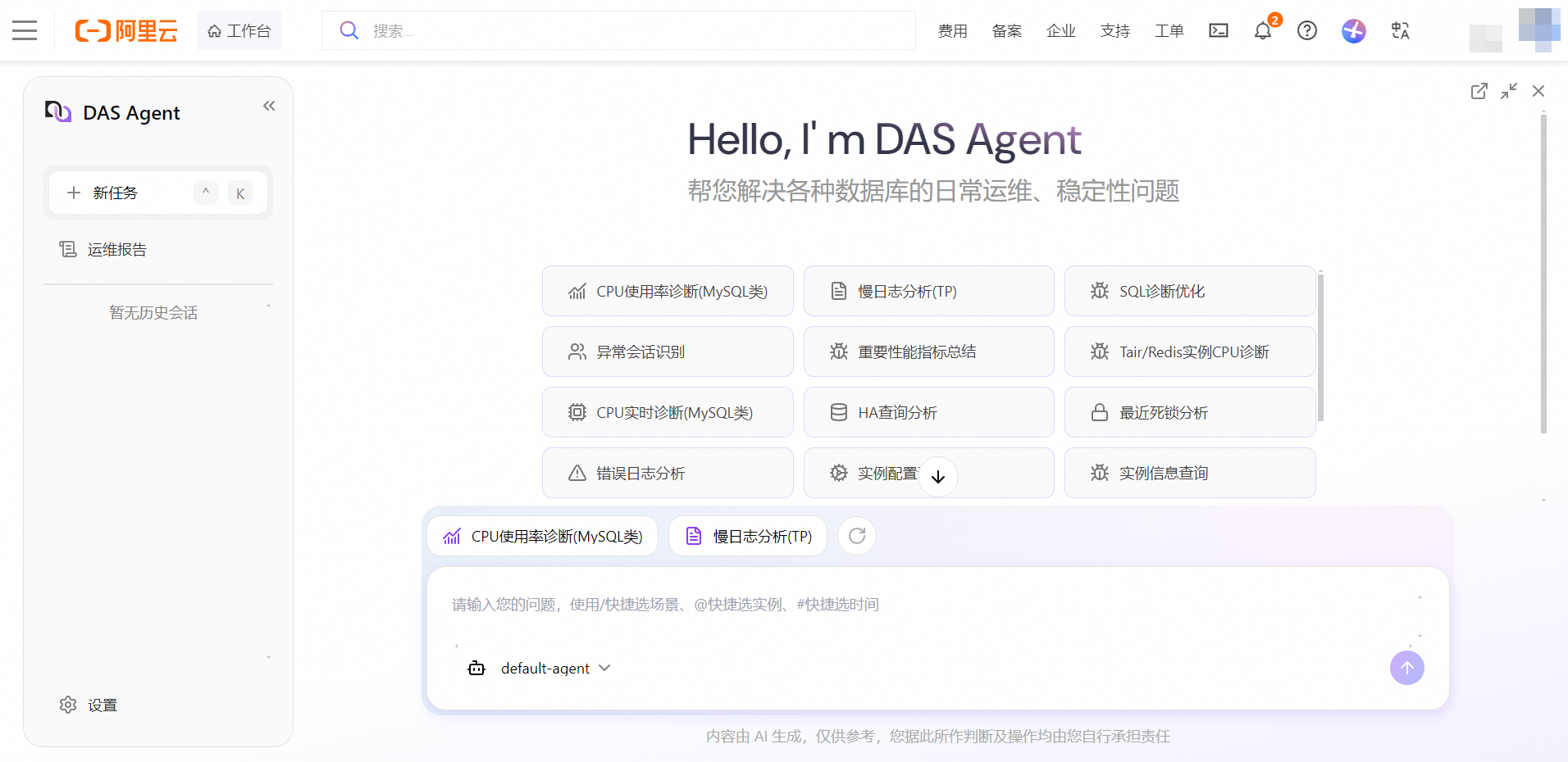 智能数据库运维大脑 DAS Agent 邀您开启 AI 驱动的数据库自治之旅!
