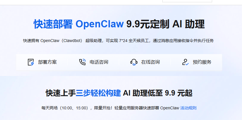 阿里云OpenClaw专属活动:三步轻松快速部署, 9.9元定制 AI 助理