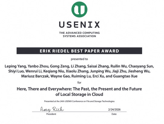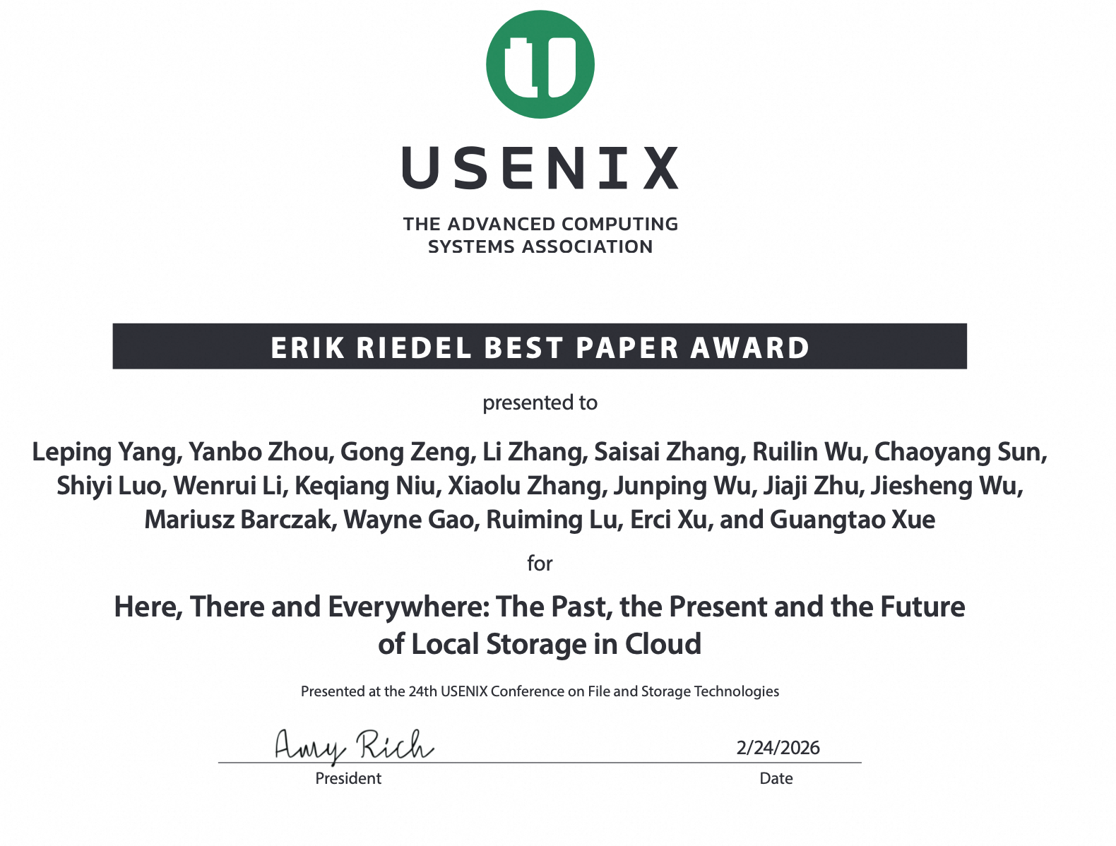 四年三次,再获殊荣!阿里云斩获全球存储顶会 FAST’26 最佳论文