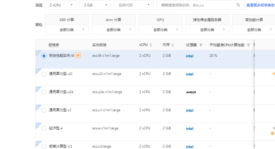 阿里云服务器2核2G配置收费标准、可选实例规格与活动价格和应用场景讲解