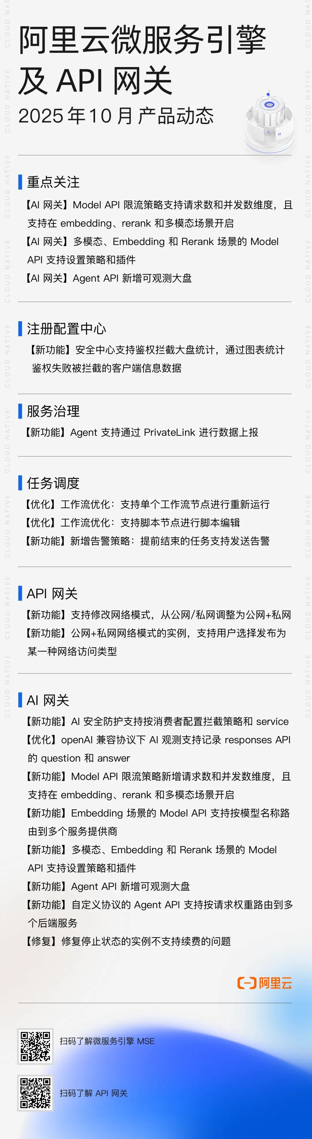 阿里云微服务引擎 MSE 及 API 网关 2025 年 10 月产品动态