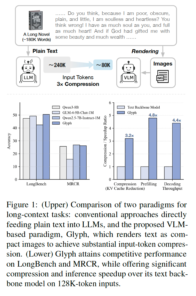 全新框架 Glyph 开源:用视觉理解文本,3–4 倍上下文压缩,近 5 倍推理提速!