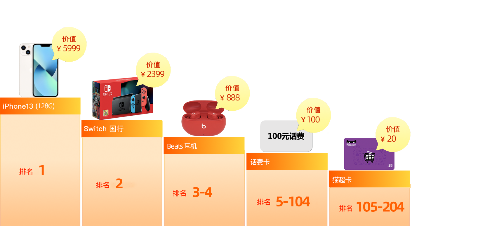 虚拟奖品:猫超卡和话费卡于活动结束(8月20日)后30个工作日内通过短信发送至活动用户。
