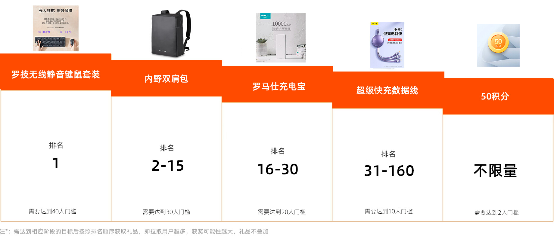 TOP16-30名(完成门槛20人)礼品:罗马仕充电宝
